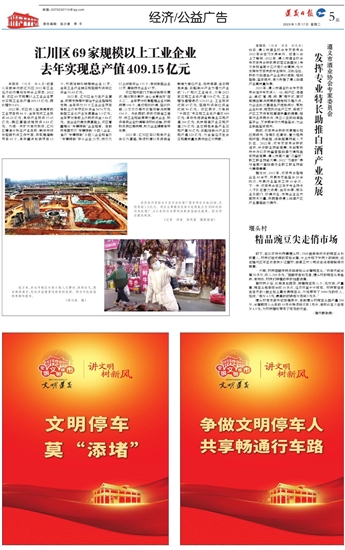 汇川区69家规模以上工业企业去年实现总产值409.15亿元