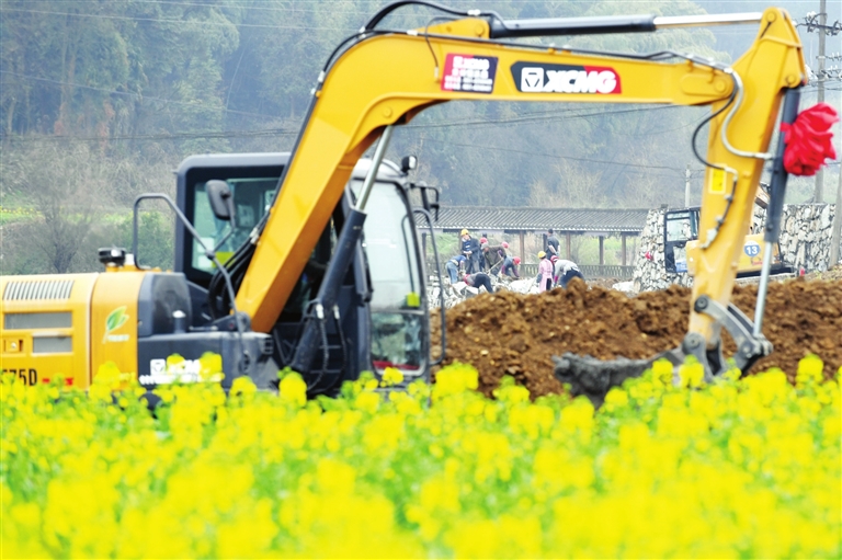 近年来,仁怀市不断推进高标准农田建设,对中低产山坡地进行改造提升,改善农业生产条件,提高农田综合生产能力,助力乡村振兴。图为2月20日,工人在仁怀市高大坪镇银水村高标准农田建设项目现场施工。