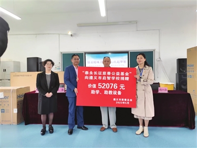 在遵义市慈善总会的精心策划下,5月9日,遵义市启智学校举行了“情系特殊儿童 爱心托起梦想”的公益捐赠活动,贵州泰永长征技术股份有限公司向该校捐赠了部分助学、助教设备,共计价值5万余元,旨在帮助学校改善教育教学设施设备,推动特殊教育高质量发展。图为捐赠活动现场。