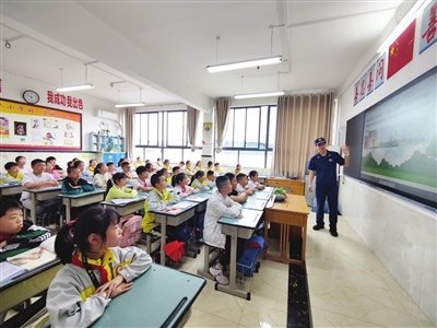5月8日,赤水市市中街道滨江社区党员志愿服务队联合赤水市消防救援大队等多部门走进赤水市第一小学,开展防灾减灾安全宣传,增强师生防灾减灾意识。 (张浪 摄)