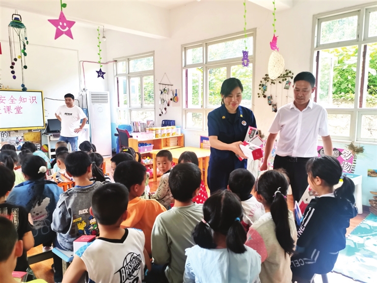 日前,播州区消防救援大队组织工作人员走进铁厂镇部分小学,开展消防知识宣传活动。图为活动现场。 (本报记者)
