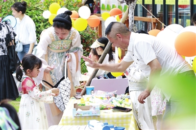 5月31日,新蒲新区紫鸢堡幼儿园举行第二届“欢迎你到小城来”活动。活动通过设立跳蚤市场的方式,培养孩子们的交往能力和沟通能力。 (记者 何骥淯 摄)