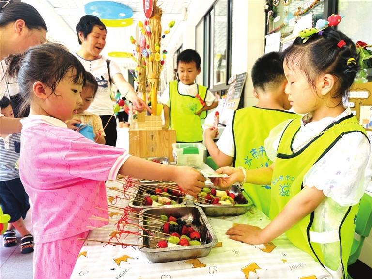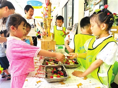 5月31日,赤水市市中幼儿园开展“市幼味道·阳光六一”活动。通过创意摆摊设点,让孩子们参与义卖、品尝美食等活动,提升他们的社会交往能力。 (张浪 摄)