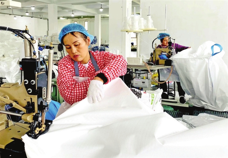 图为位于该园区的贵州道丰新材料有限公司生产车间,工人正在生产塑料制品。