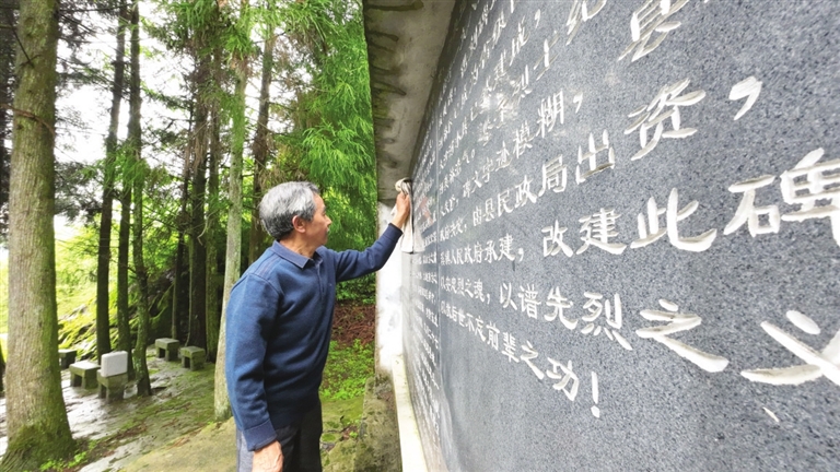 擦墓碑、扫树叶、拔杂草……从青丝到白发,从壮年到垂暮,邓刚华日复一日,年复一年用心守护烈士纪念碑,30余载从未间断。