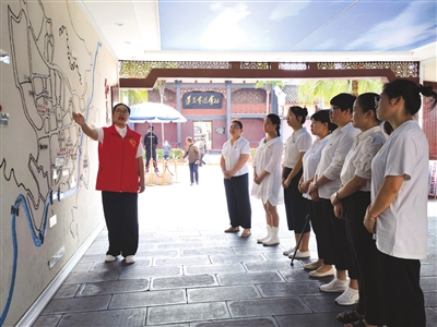 6月27日,红花岗区老城街道党工委组织部分党员开展“我和党旗合个影 初心如磐跟党走”主题活动。图为该街道党务干部聆听红色故事。 (记者 向婧 摄)