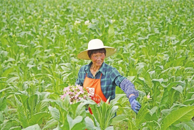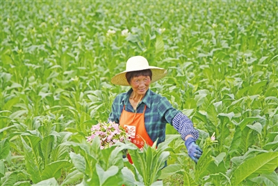 播州区乐山镇烟农今年种植的烤烟长势喜人。连日来,烟农正抢抓晴好天气,做好烟叶中后期管护工作,确保烟叶丰收。