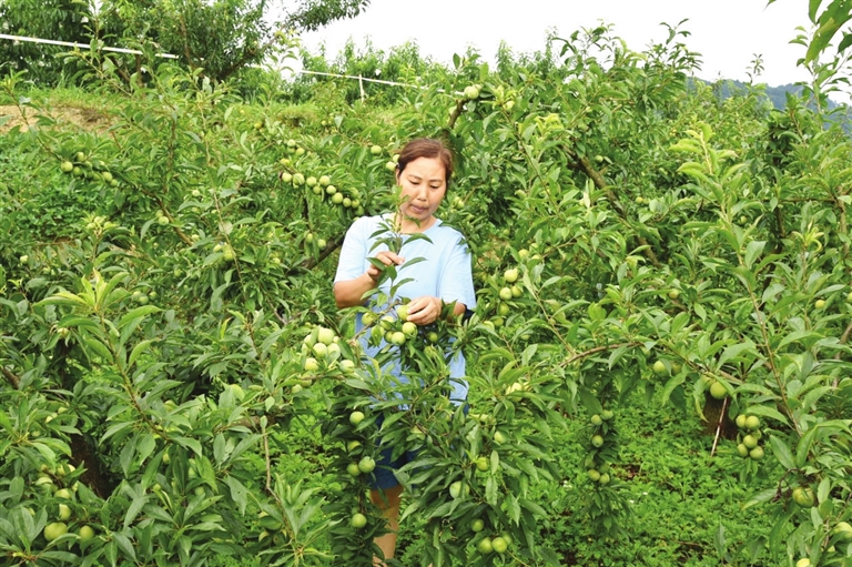 时下正是李子成熟的季节,桐梓县尧龙山镇怀国寺村200余亩青脆李喜获丰收。近年来,尧龙山镇不断调整产业结构,引进种植青脆李、蜂糖李、布朗李等品种,打造特色农产品品牌,带动村民增收。图为果农采摘李子。 (记者 陆邱珊 摄)
