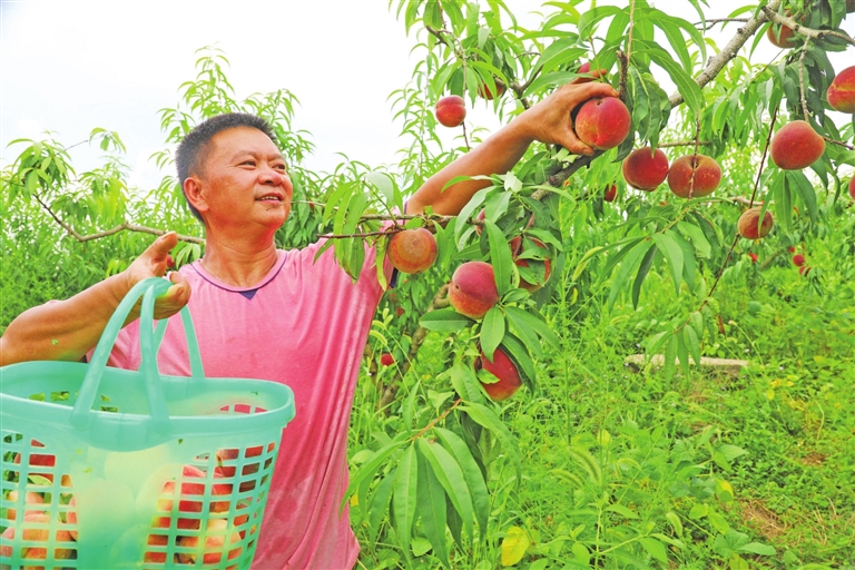 时下,红花岗区深溪镇高坊村桃李人家果园的100多亩苹果桃已成熟,吸引了不少市民前去采摘、品尝美味。