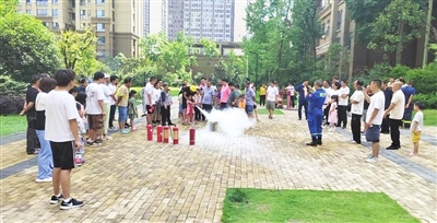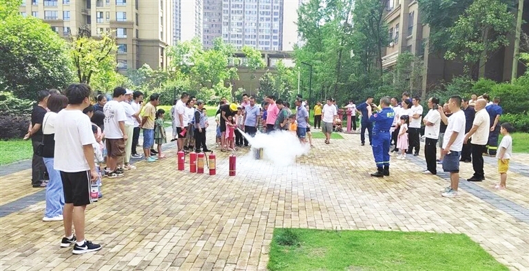 为进一步增强居民消防安全意识,提高社区消防应急处置能力,日前,新蒲新区礼仪街道灵犀社区开展应急演练活动,筑牢安全“防火墙”。 (记者 张婷 摄)