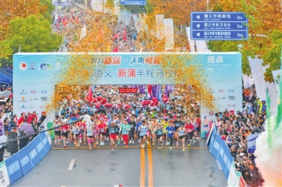 11月12日上午8时30分,2023遵义·新蒲半程马拉松在新蒲新区平安大道奥体中心广场鸣枪开跑,来自全国各地的6000名跑者齐聚遵义,共同感受马拉松比赛的运动激情。