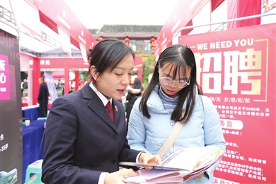 2月28日,遵义市检察机关组织干警走进遵义市2024年春风行动暨东西部劳务协作招聘会现场进行普法宣传,为招聘企业和应聘者提供法律咨询等服务,以法治力量保障和促进劳动关系和谐。 (记者 胡雪 摄)