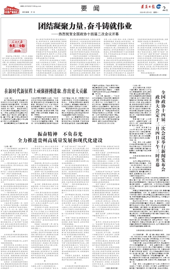 振奋精神 不负春光 全力推进贵州高质量发展和现代化建设