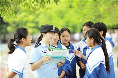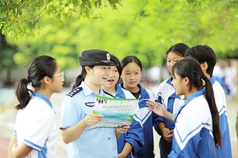 6月24日,在赤水市文化学校,民警开展禁毒宣传。