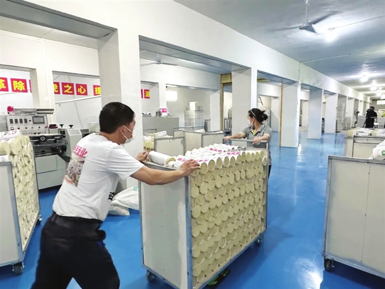 走进正安县安场镇石井村利民食品有限公司生产车间,机器轰鸣,工人们在设备间来回穿梭,一派热火朝天的景象。