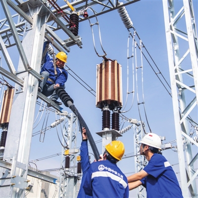 10月29日,在成渝中线高铁新江北牵引变电所内,工作人员在安装设备。