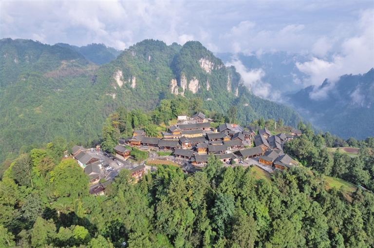 这是2023年10月10日拍摄的湖南省湘西土家族苗族自治州花垣县十八洞村景色(无人机照片)。