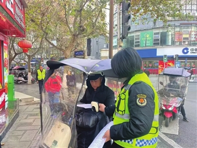 12月16日,红花岗区老城区域非机动车、摩托车等车辆乱停乱放专项整治行动启动,此次整治行动将持续到2025年1月15日。图为工作人员对非机动车车主进行宣传劝导。