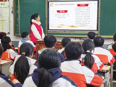 截至目前,红漾黔湄宣讲团已开展各类宣讲40余场次,覆盖人数达1.6万余人。图为红漾黔湄宣讲团走进校园开展遵义会议精神主题宣讲。
