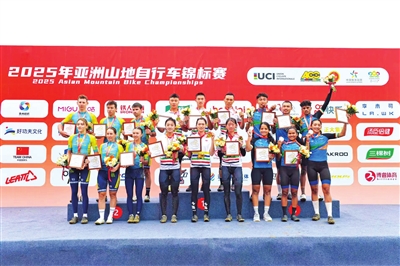 4月23日,2025年亚洲山地自行车锦标赛在新蒲新区三坝水库山地自行车赛训基地正式开赛。上午9时,团体接力赛决赛举行,共有5支队伍参加。经过激烈角逐,由王胜、王婷、王志皓、张粉粉、伍志帆、米久江组成的中国队表现出色,勇夺团体接力赛冠军,哈萨克斯坦队、印度队分获亚军和季军。