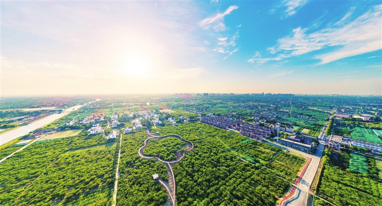 以余新镇长秦村庙浜为核心,近年来,当地发挥农业村的稻田资源优势,结合“稻米文化”和“余新三宝”,做强“稻来米in渔里”品牌IP,南湖区全力打造了“渔里问道”和美乡村示范片区,在田间地头绘就一幅栩栩如生的现代农业“新丰景”。