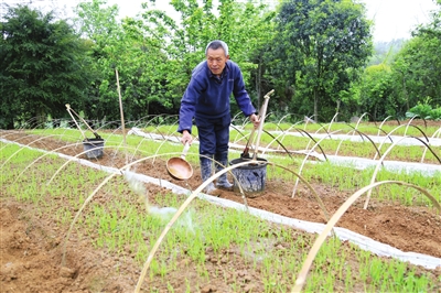 眼下正值水稻育秧关键期,连日来,凤冈县采取“党支部+合作社+农户”组织方式,全力推进水稻种植。图为4月20日,在位于凤冈县何坝街道水河村的水稻育秧基地里,村民正在管理秧苗。
