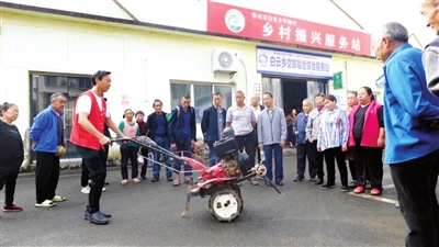 图为培训现场,技术人员为村民详细讲解微耕机的操作规范。