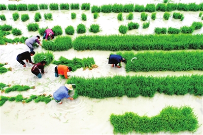 图为6月2日,村民们在位于播州区三岔镇红光村的贵州卓豪农业优质水稻试验示范基地劳作。