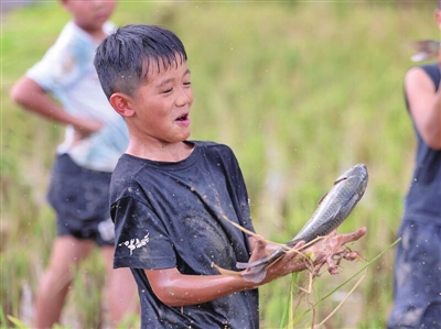 9月11日,正安县安场镇石井小学的劳动实践基地里一片欢声笑语。学生们纷纷赤脚踩进水田,一边弯腰收割金黄的稻谷,一边兴奋地捕捉游动的稻花鱼,沉浸式体验秋季丰收的喜悦。