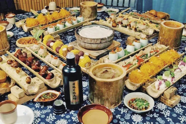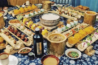 苕丝糖、苕汤圆、赤水熊猫宴、猪儿粑、竹筒饭、合马羊肉、遵义羊肉粉、遵义红油米皮等。
