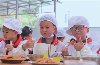 日前,正安县第八小学“烹饪课堂”开课了,孩子们有序走进烹饪教室——学校食堂,洗手、戴口罩、戴帽子、系上小围裙……孩子们瞬间变身为小厨师,无论是制作粉蒸肉还是胡萝卜炒肉,大家在亲手操作中体验劳动的乐趣。