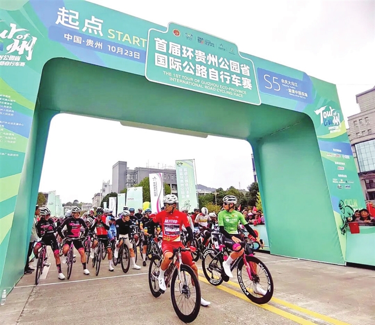 10月23日上午8时30分,首届环贵州公园省国际公路自行车赛S5余庆大乌江—湄潭中国茶海(遵义赛段)鸣枪开赛。遵义赛段赛事起点为余庆县大乌江,终点设于湄潭县中国茶海,全长185公里。