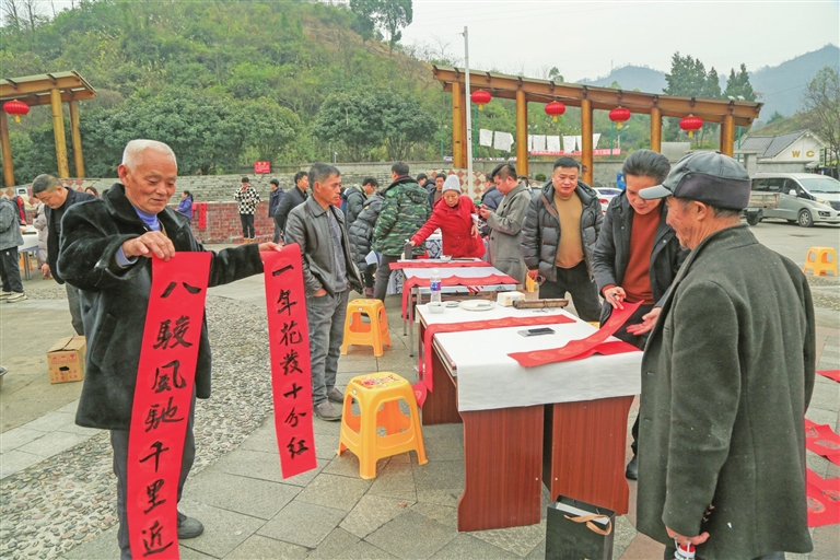 1月7日,播州区文联与仁怀市文联在播州区泮水镇联合开展“笔走偏岩河·墨染西乡情”主题书画采风交流活动。两地书法家、美术家与当地书画爱好者齐聚一堂,以笔为媒、以墨传情,现场挥毫创作,书写春联、绘制画作,为广大群众送上新年的祝福。
