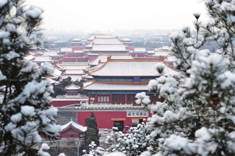 这是1月18日在北京景山公园拍摄的故宫雪景。