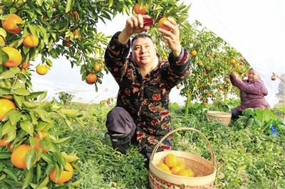 图为近段时间,凤冈县何坝街道水河村的脐橙熟了,村民采摘脐橙供应春节市场。